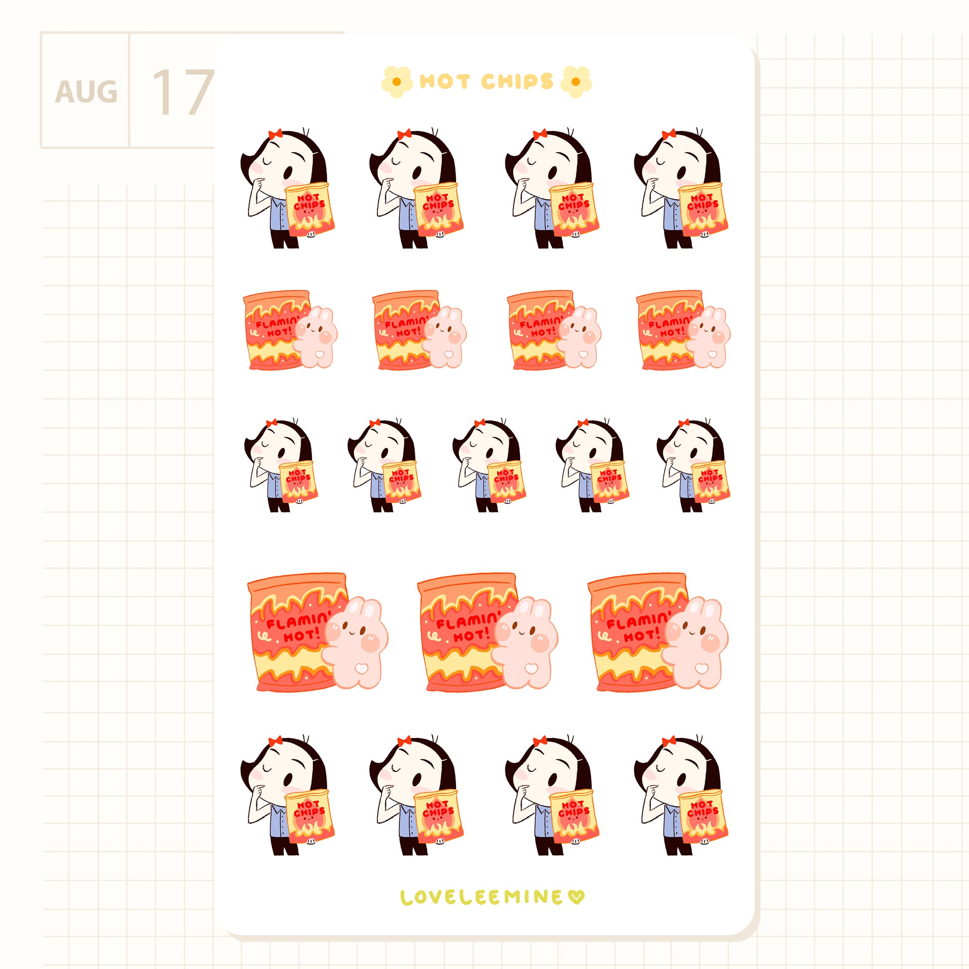 Whether you are eating a bag of hot Cheetos, or any other “flamin’ hot” flavored chips, these stickers got your spicy cravings covered! 🥵