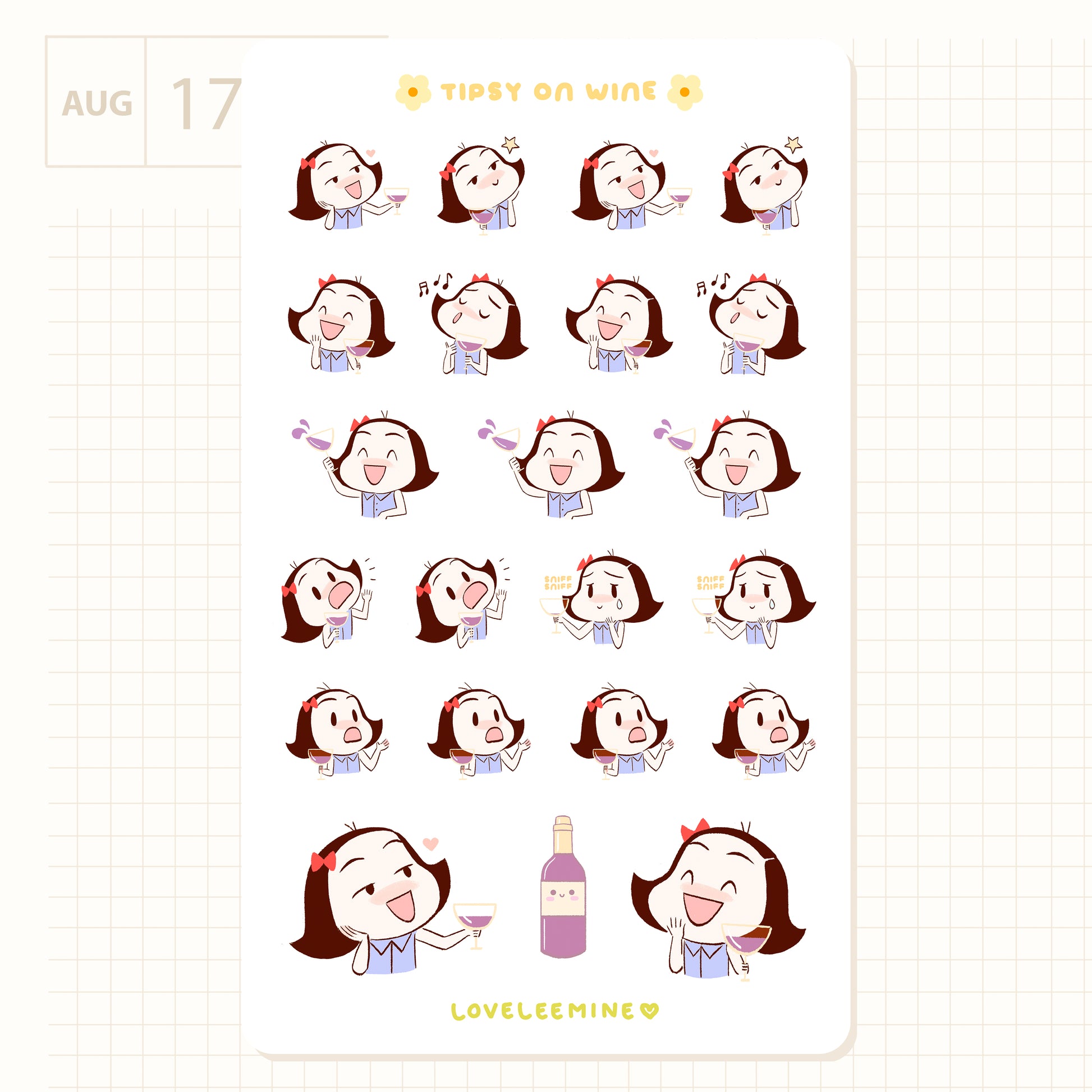 Whether you are celebrating or simply having a glass of wine for a down time, these tipsy Coco stickers are perfect for the occasion ♡