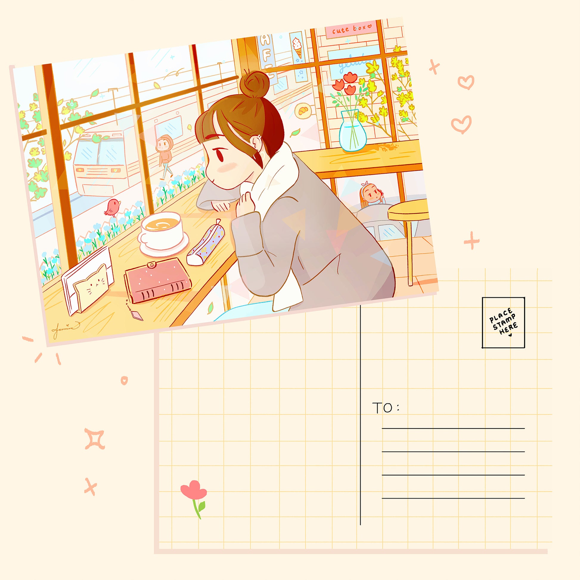 High quality 4"×6" art print / postcard. The front of the card has a smooth, matte finish-coating on it. The back surface has no coating so you can write on this side! :)